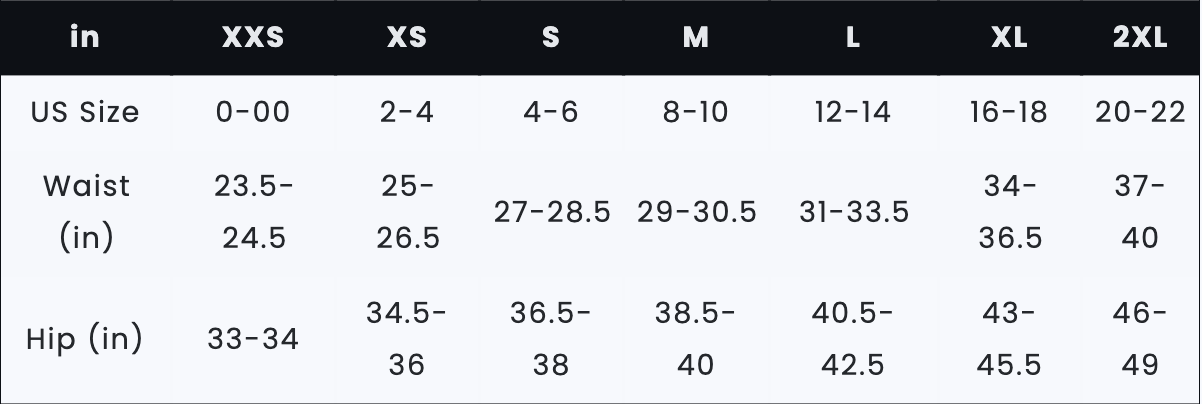 Sizing Chart (in/cm)